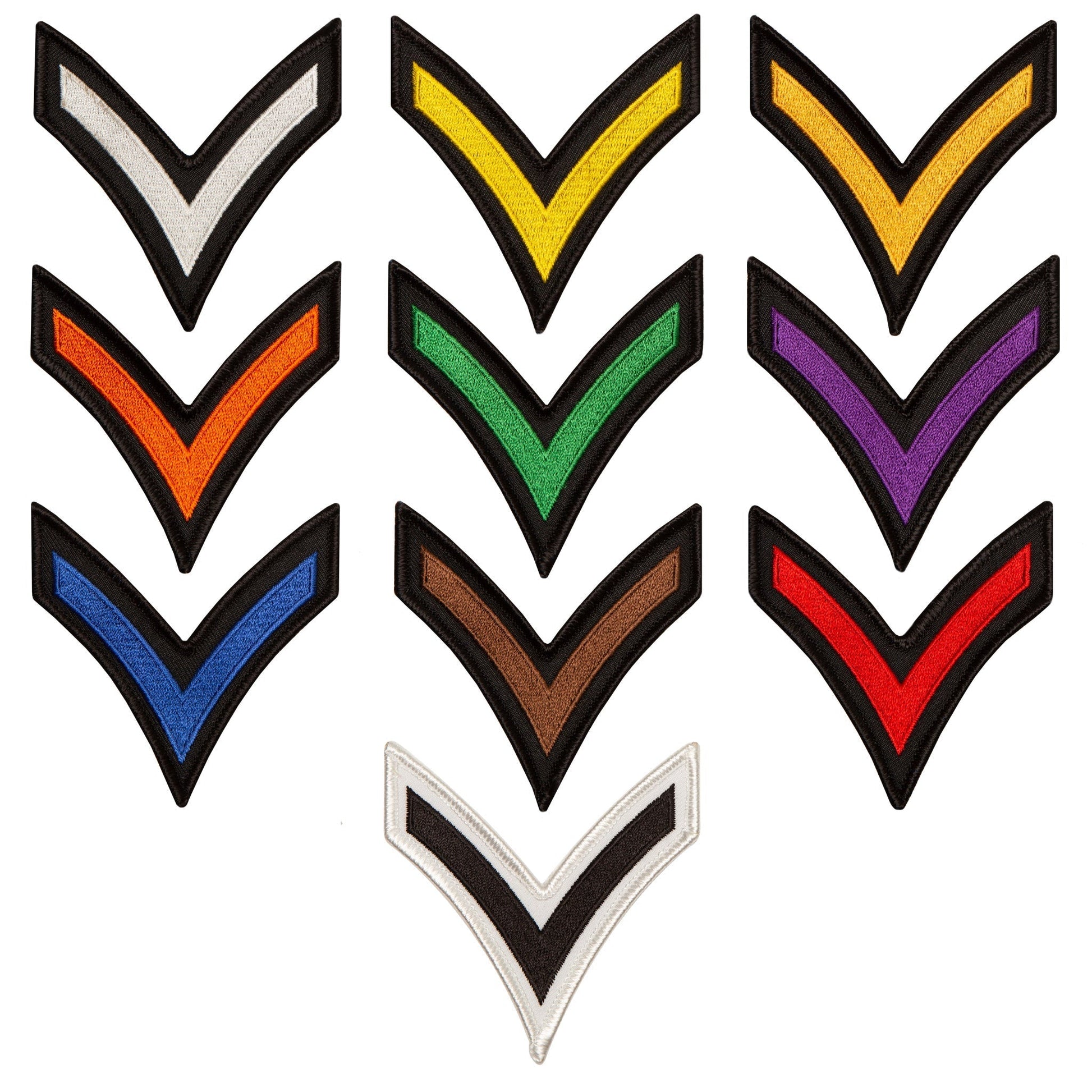 These chevron stripe patches are great for rank, promotions, awards, teams and more. With heat seal backing, these patches can be applied easily. Stripes indicate belt rank and increase motivation. Looks great on sleeves or pants. 10 color combinations available. Measures 3'' x 3 1/4''.