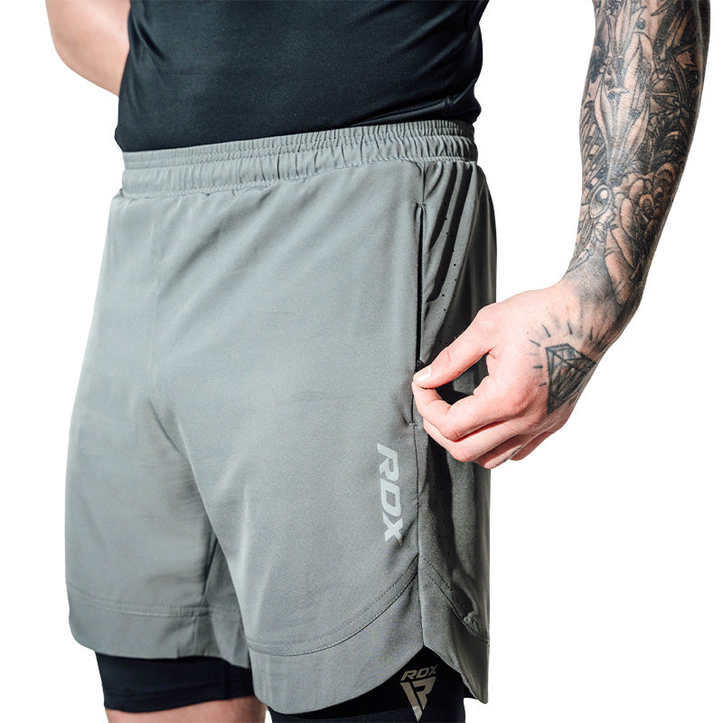 Redefine your combat prowess with our T16 MMA shorts, a seamless blend of performance, comfort, and style designed for champions. These cutting-edge shorts fuse high-quality materials with a sleek design to ensure you shine in the ring. Engineered for the rigorous demands of MMA, the snug yet flexible fit supports your every move, while the inner compression layer enhances flexibility and protects against strain. Moisture-wicking technology keeps you cool and dry, and reflective accents ensure you look as sharp as your moves. The RDX 2-in-1 shorts function as both fight shorts and compression gear, unveiling your true ferocity in combat.