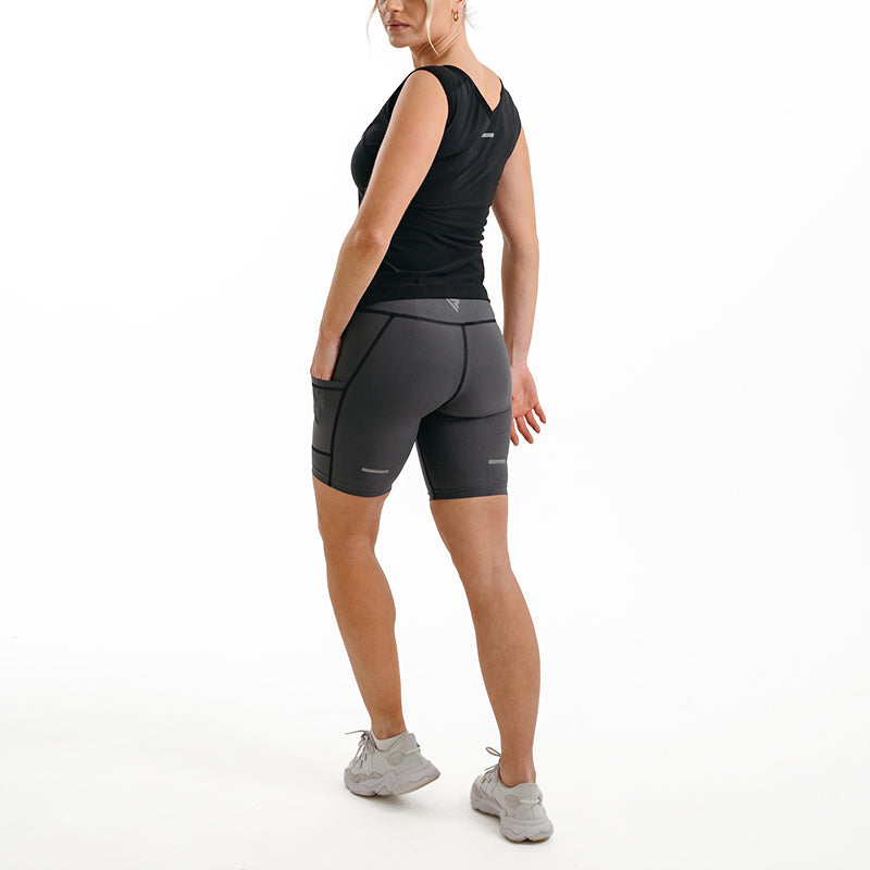 - Reflective logo and stripes to stay visible during low-light runs or late-night laps.