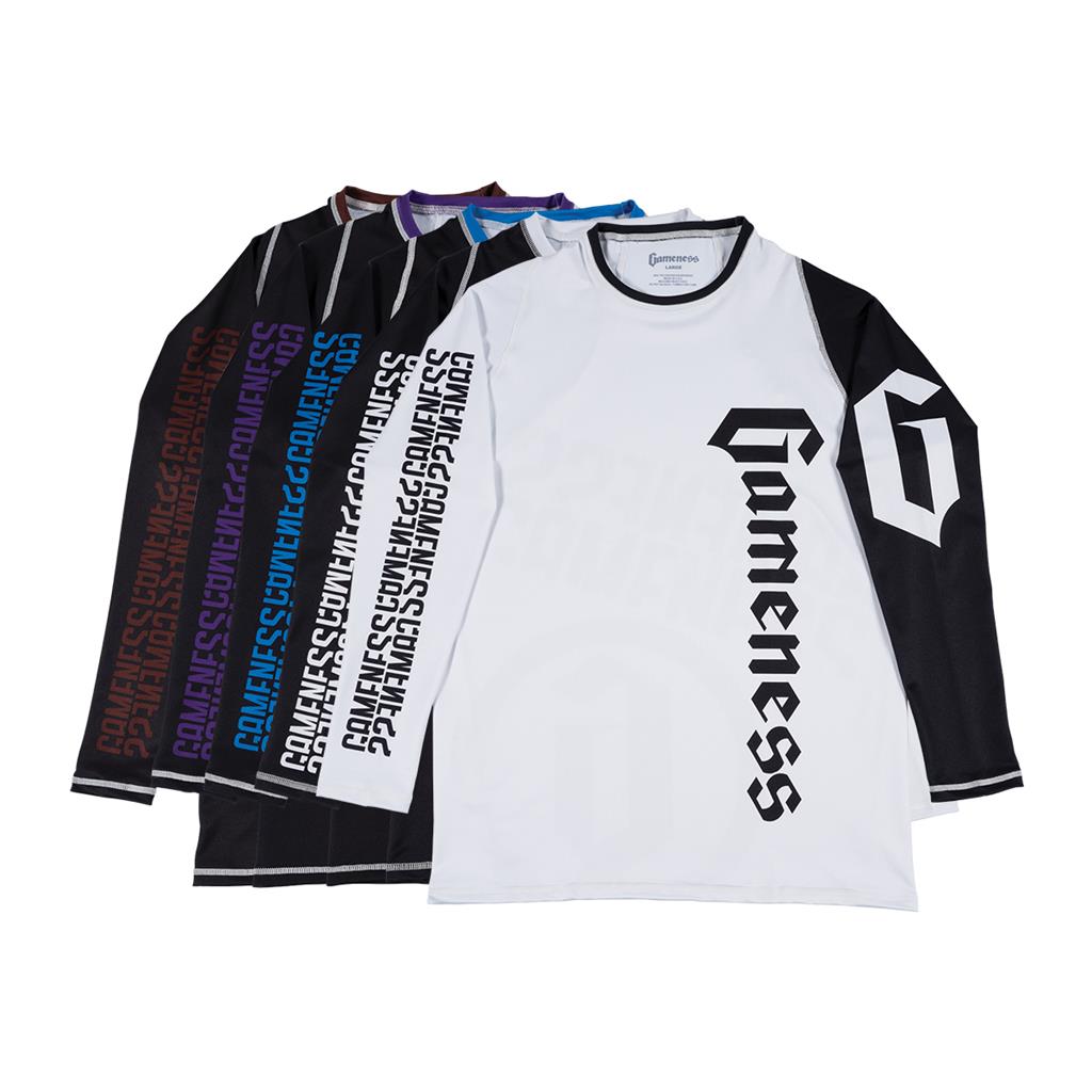 The Gameness Pro Ranke Rash Guard features comfortable and strong flat lock stitching, dyed-into-the-fiber graphics that will never peel or fade, and moisture wicking fabric.