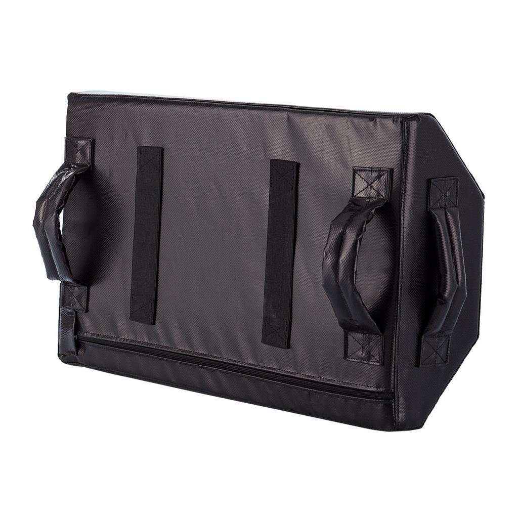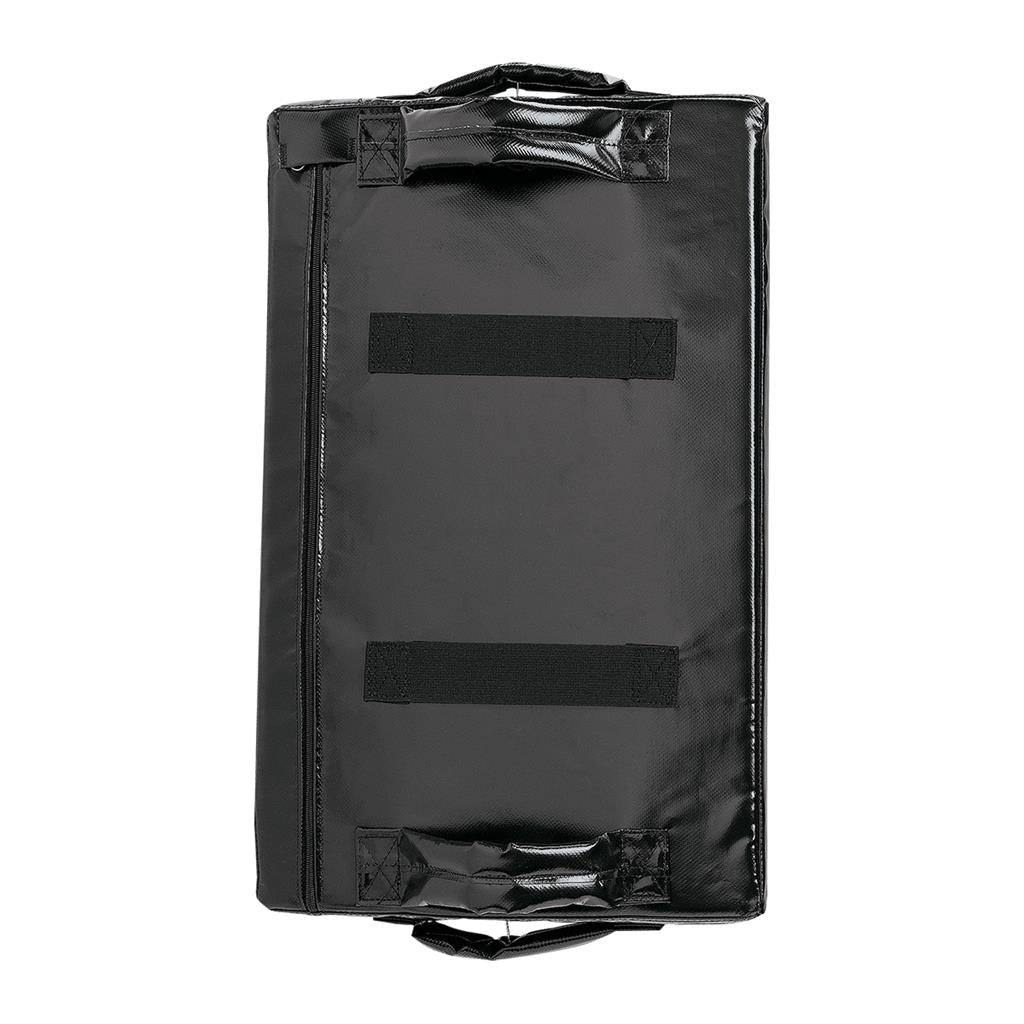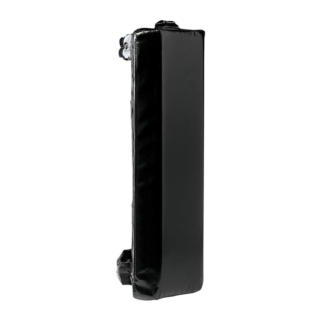 This shield features a multi-angled striking surface for a variety of punch and kick combinations. Two handles on the back and one located on each side ensure a good grip. Two elastic arm straps centered on back secure the pad during partner training. Made of durable 16 oz. vinyl and thick foam padding. Sold individually. USA/Imported.