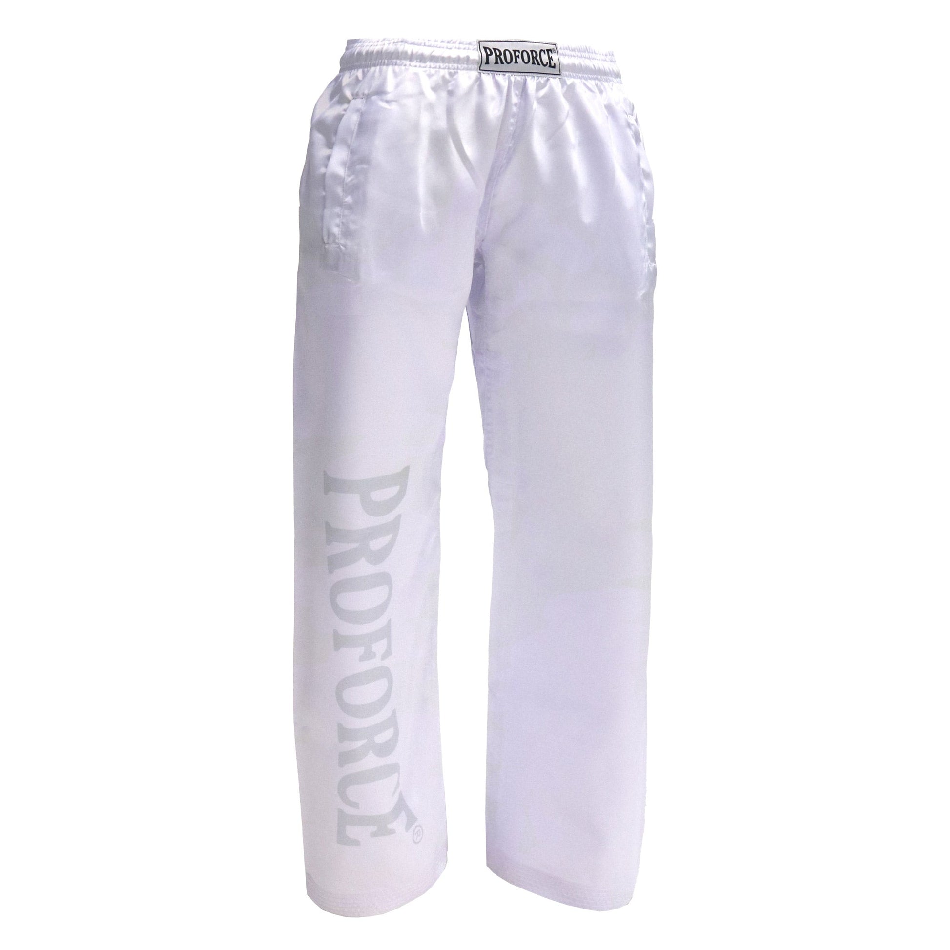 These 6 oz. light weight karate pants come with side pockets and are made of 100% polyester satin and feature an elastic drawstring waist. Available in sizes ranging from x-small to x-large.