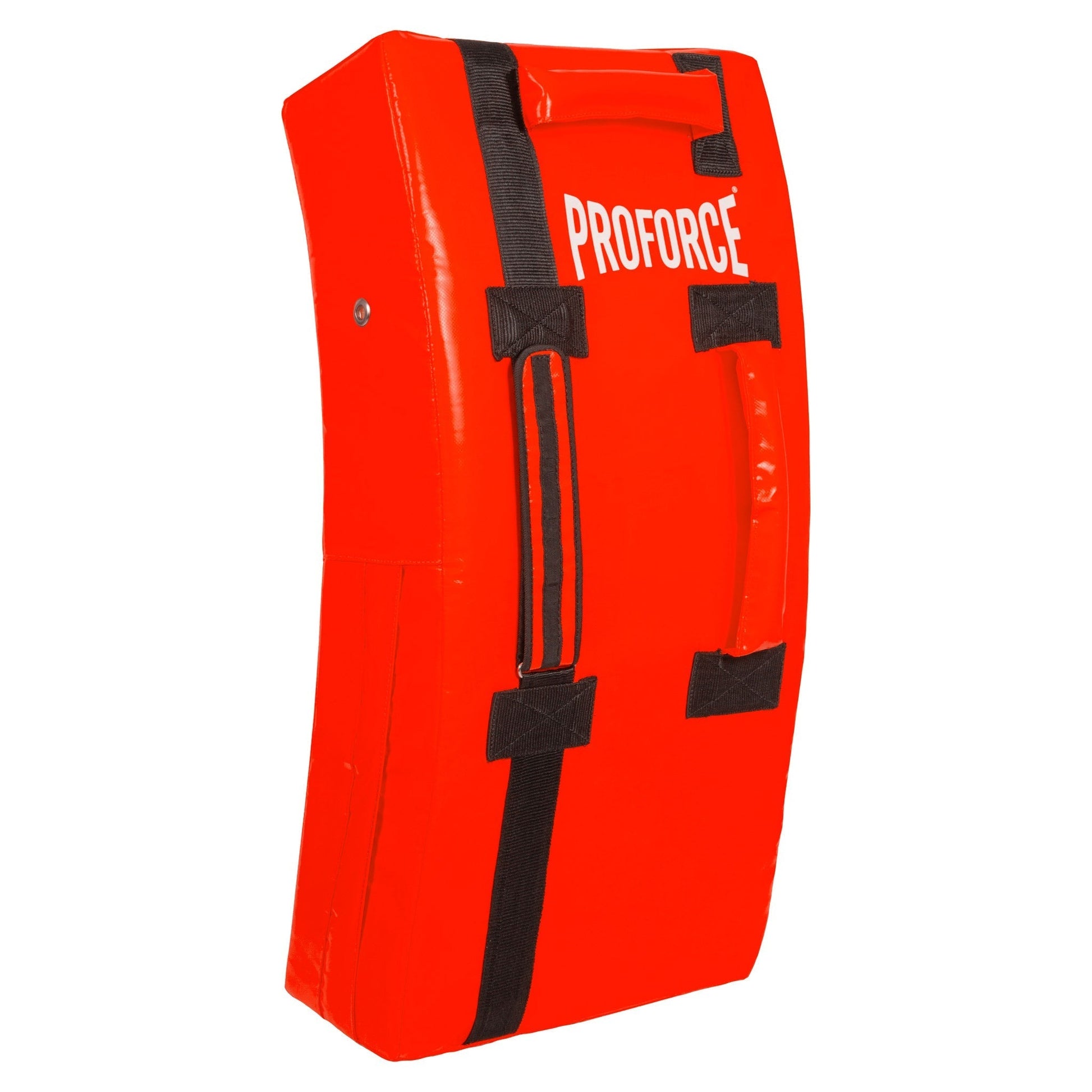 The ProForce Velocity Curved Body Shield has a heavy guage reinforced vinyl shell, and multiple handles featuring an adjustable hook loop main closure strap for a secured striking target. The curved design gives striker multiple angles to attack, along with reinforced closed cell high density foam cushion. This priduct is xold individually and the size is 29'' x 15'' x 6'' to provide premium protection for the trainer.