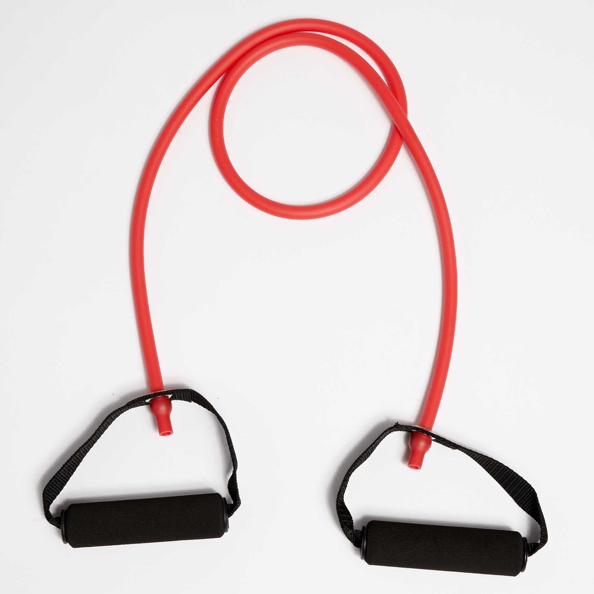 These Resistance Bands are great for both men and women. They are made of rubber and include plastic handles with 3 tension weights to help tone your muscles. Red is Light, Blue is Medium and Black is Heavy. Our Resistance Bands help improve your workout by adding strength training for your back, upper arms, and chest.