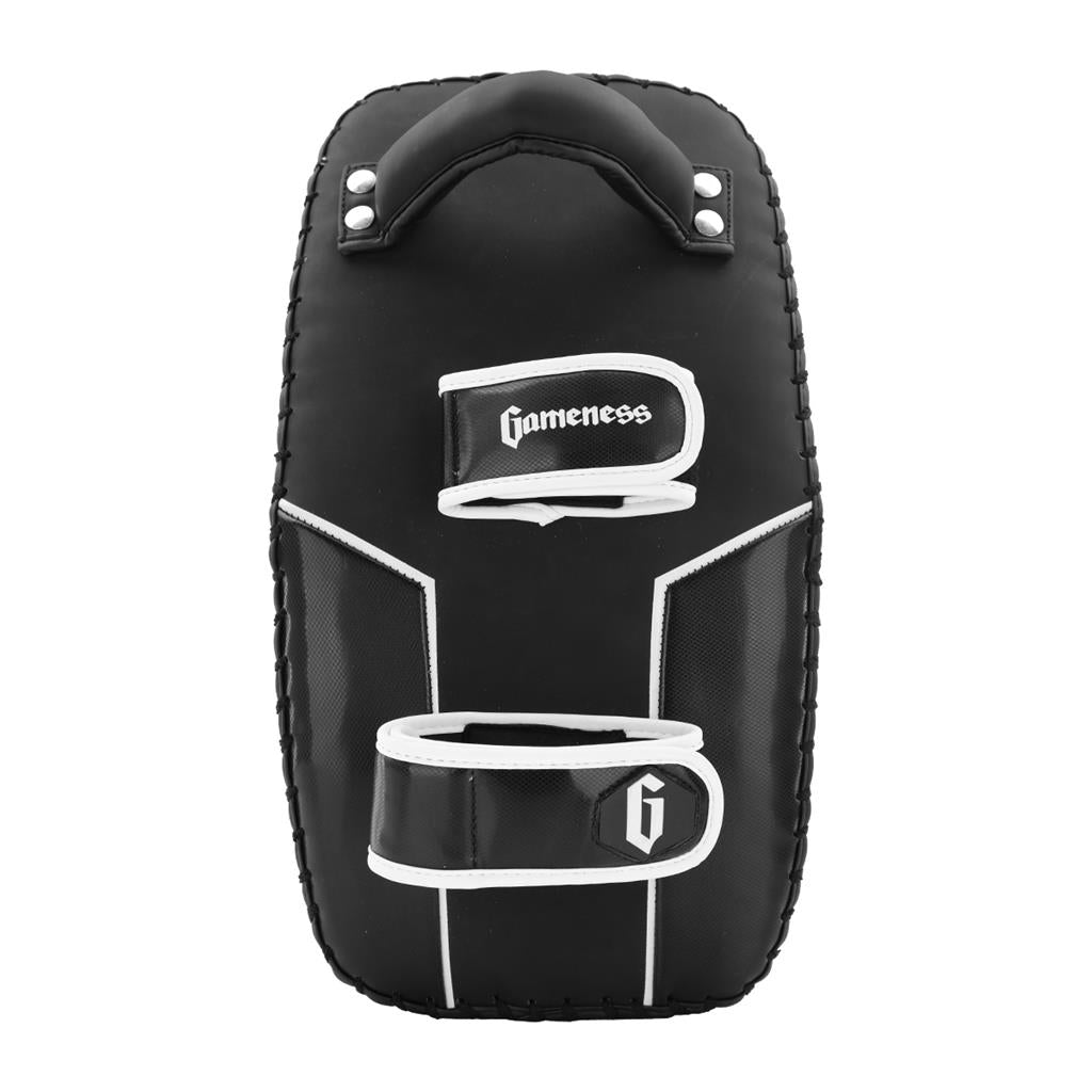 Designed for the committed martial artist's partner practice of heavy strikes and kicks, this Thai pad is constructed with thick foam padding a top handle and a bottom hook-and-loop strap for stability.