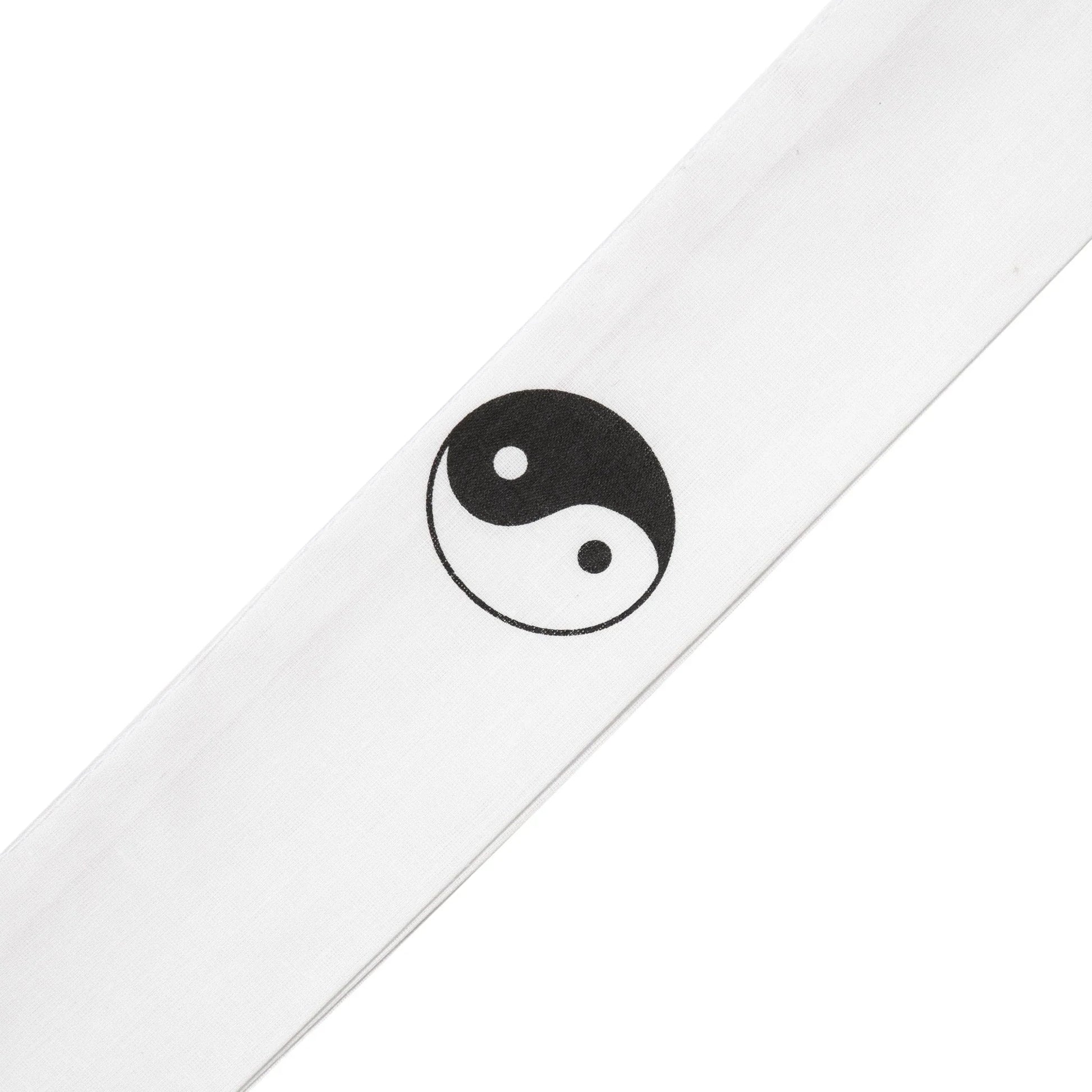 This tie-on headband has a top quality cotton/poly blend. Single Yin & Yang design that measures 2 1/2'' wide x 42'' long. It is machine washable and fits kids to adults.